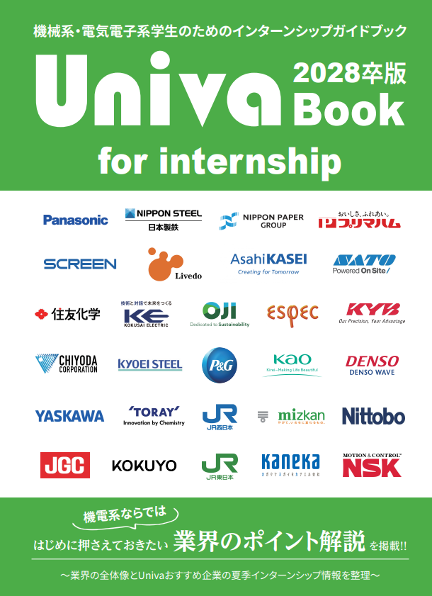 Univaは、今夏のインターンシップ参加を検討している機械系・電気電子系専攻の学生を対象に、機電系学生のためのインターンシップガイドブックを発行いたしました。はじめて就活に取り組む機電系学生向けに、自分に合うキャリアを見つけるためのエッセンスを集約しました。
